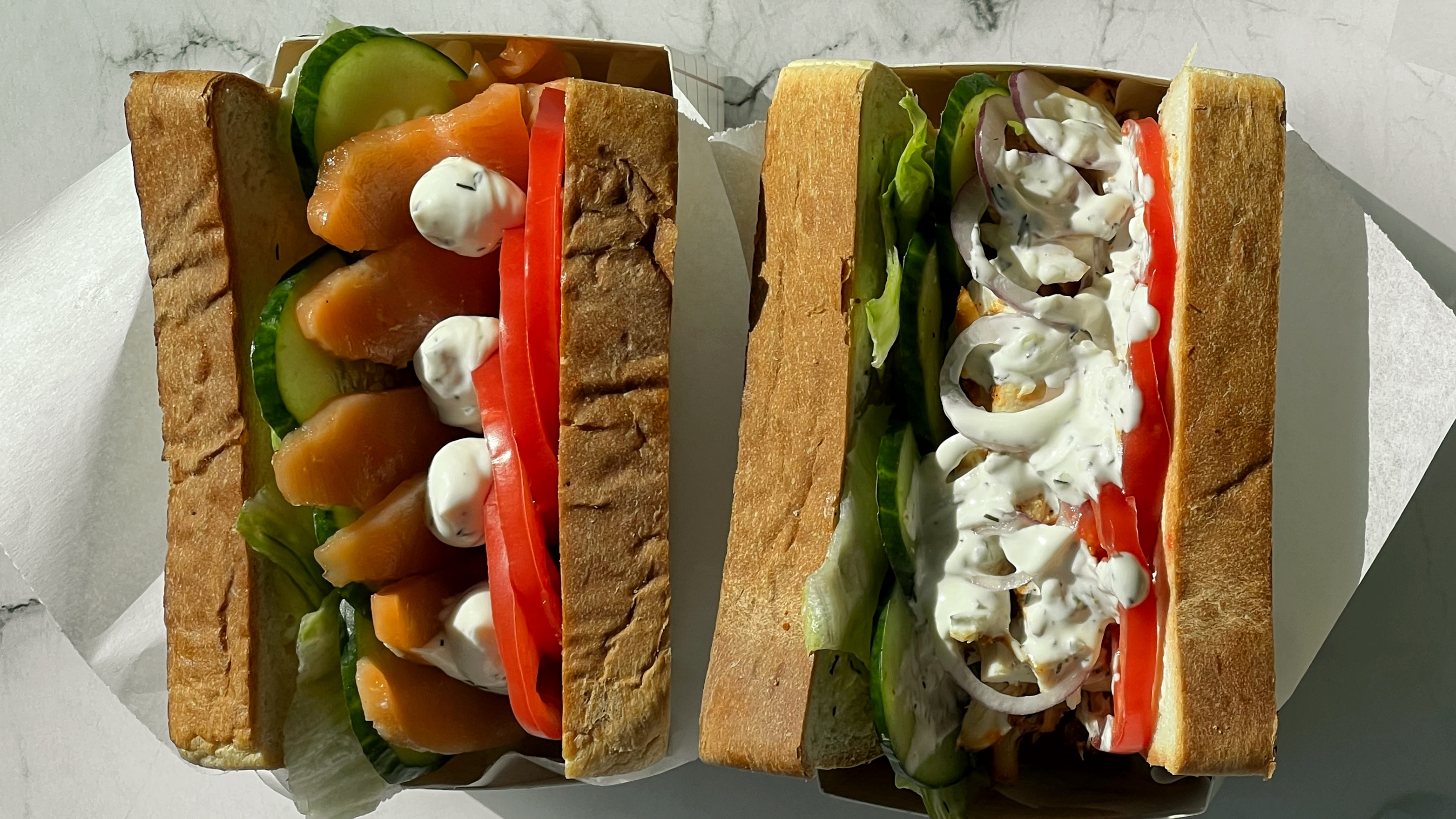 The menu is based on variations of stuffed bread (Korean toast, rolls and pitas), but there are also soups, salads and appetizers. There is a healthy lifestyle and vegetarian options