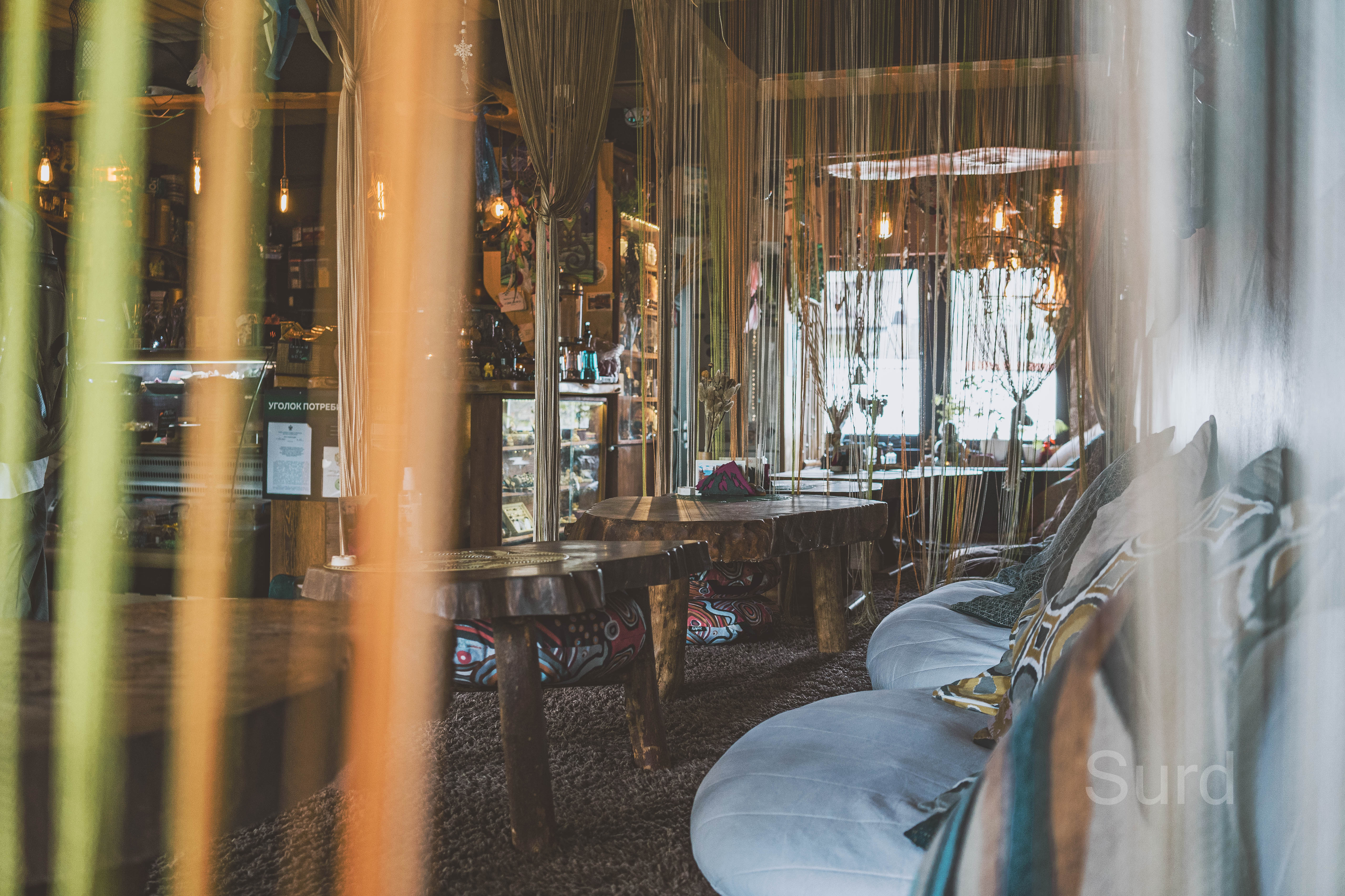 Атмосферное Эко-кафе в Красной Поляне и Адлере. Вегетарианское меню, Китайский Чай и интерьер в Этническом стиле позволят расслабиться и чувствовать себя как дома. По вечерам проводятся кинопросмотры и уютные концерты.