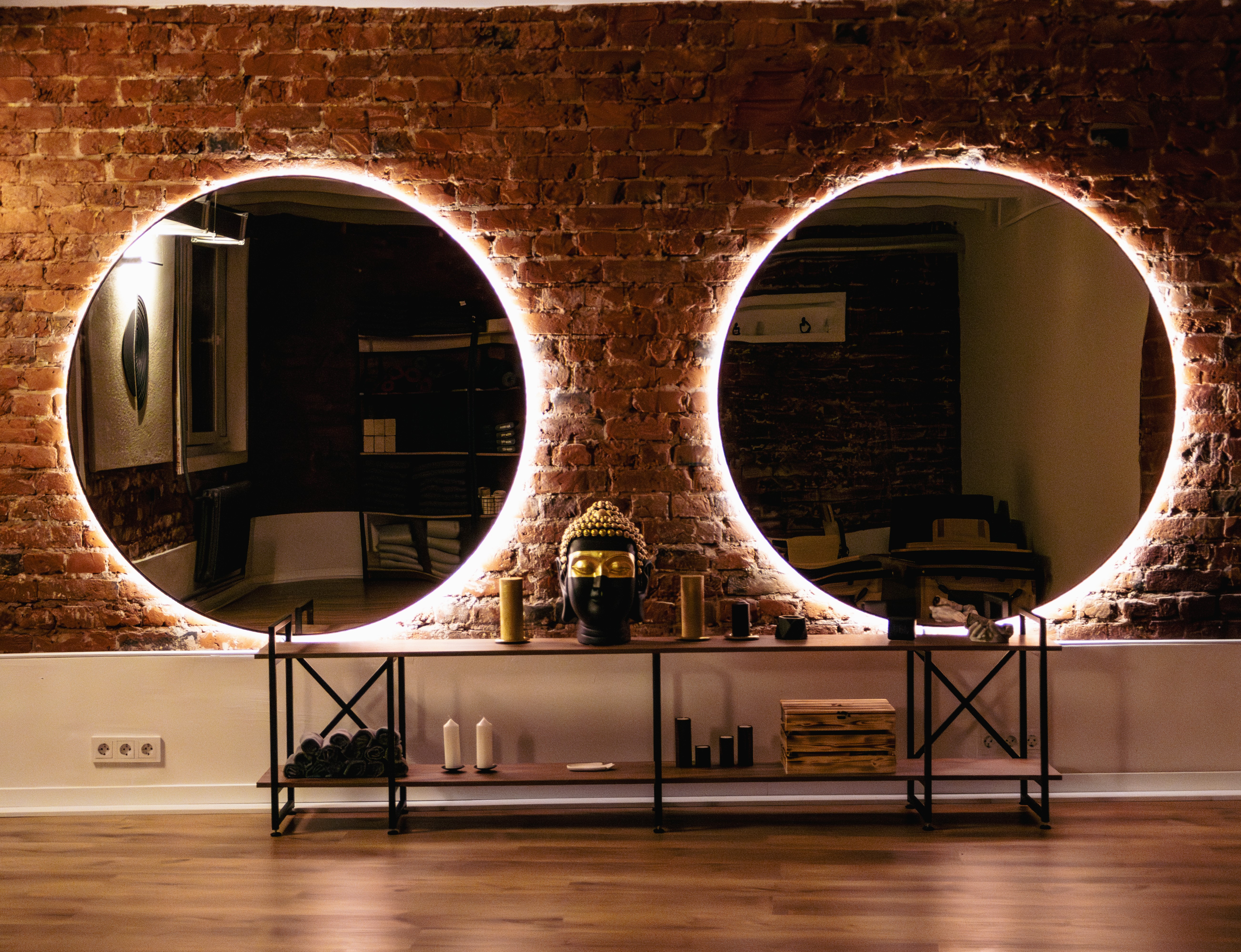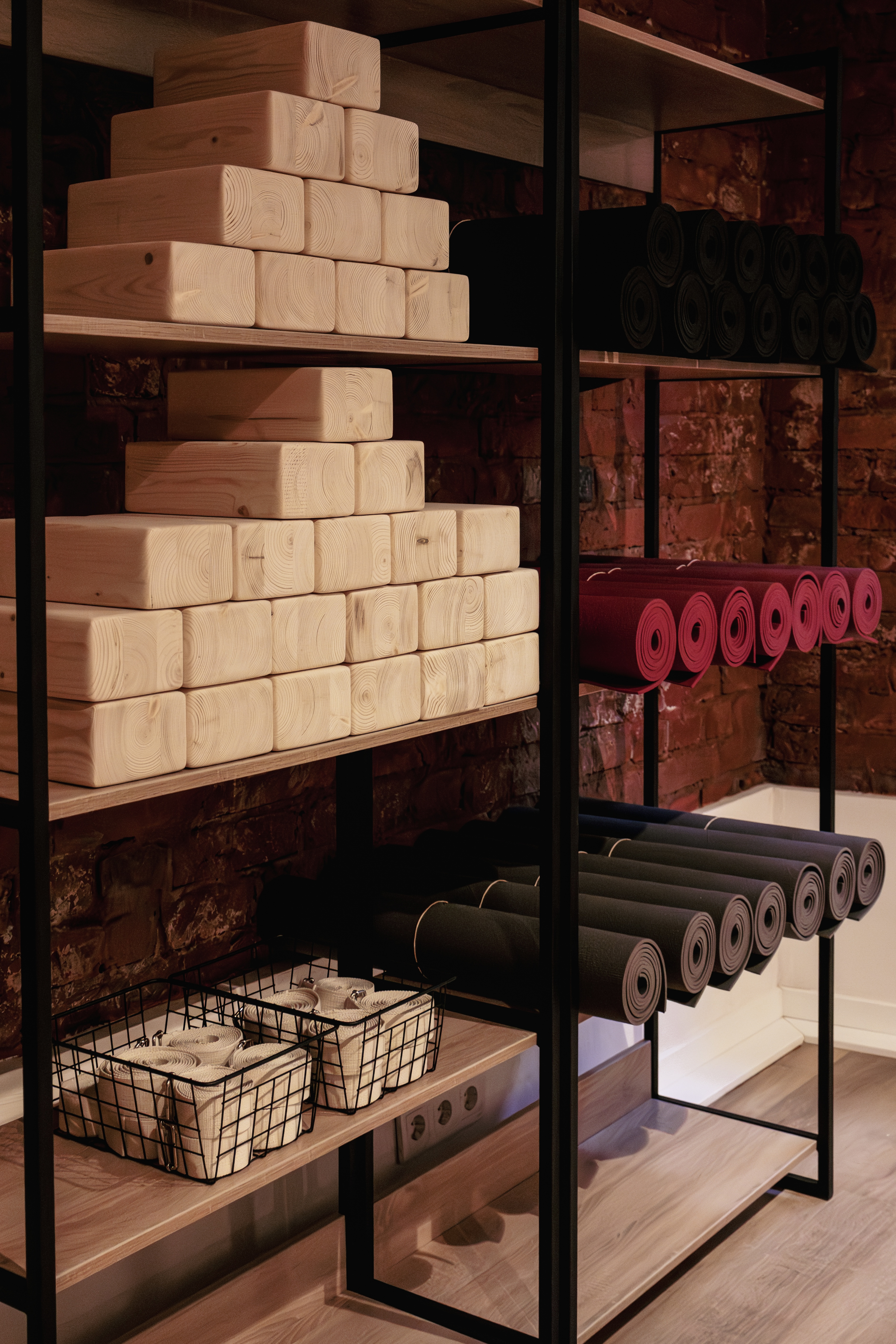 Добро пожаловать в нашу студию йоги и пилатеса, где вас окружат уют и комфорт. Дизайн студии выполнен в эко-стиле с элементами лофт, что создает идеальное сочетание натуральных материалов и современного дизайна. Мы сохранили исторический характер помещения, оставив первозданный кирпич и подчеркнув его современным стилем.