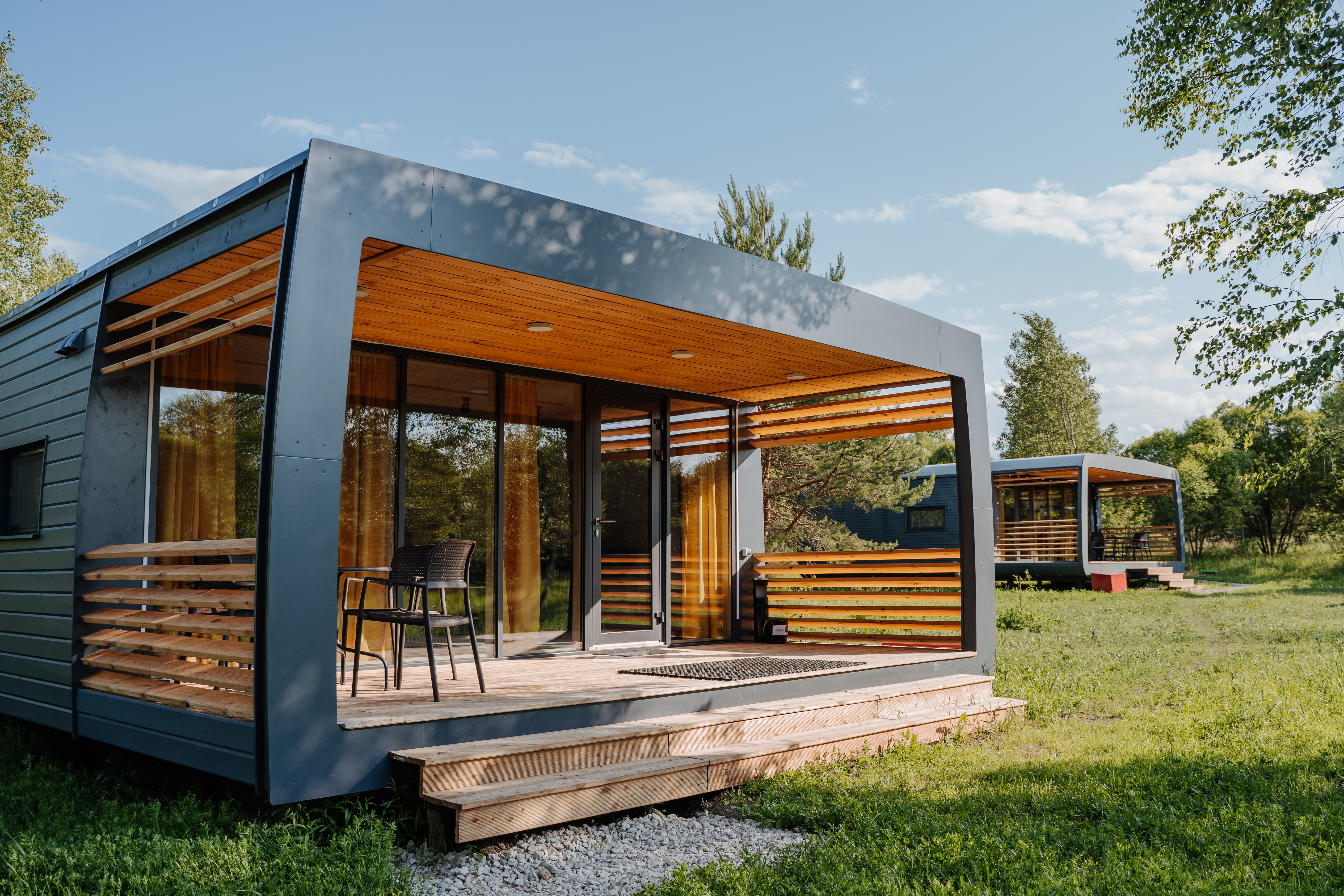Также на территории экопарка представлено 20 гостевых мини-домиков глэмпинга для проживания в летний период.