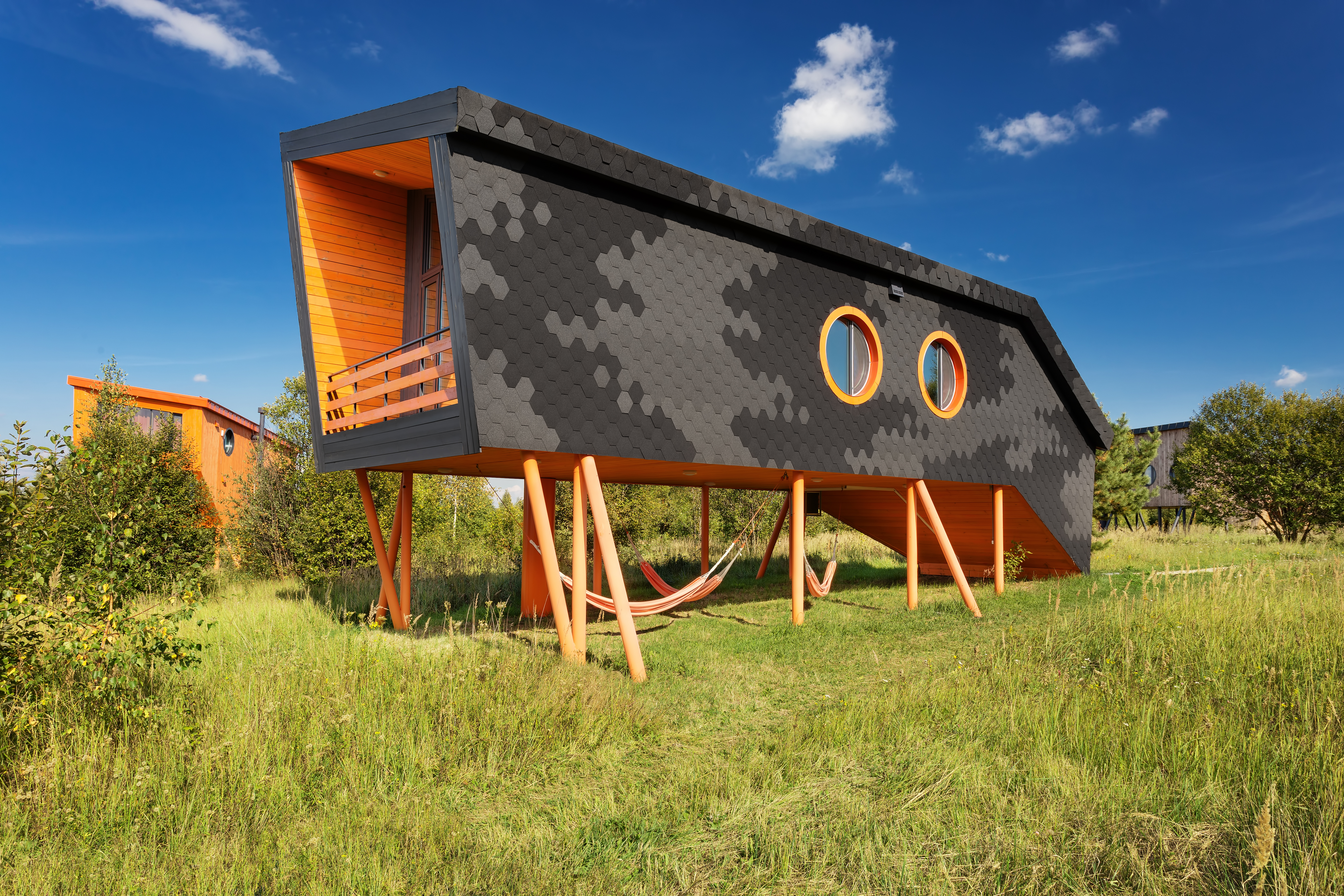 На территории экопарка представлено разнообразие красивых, экологичных, энергоэффективных домов для проживания гостей.