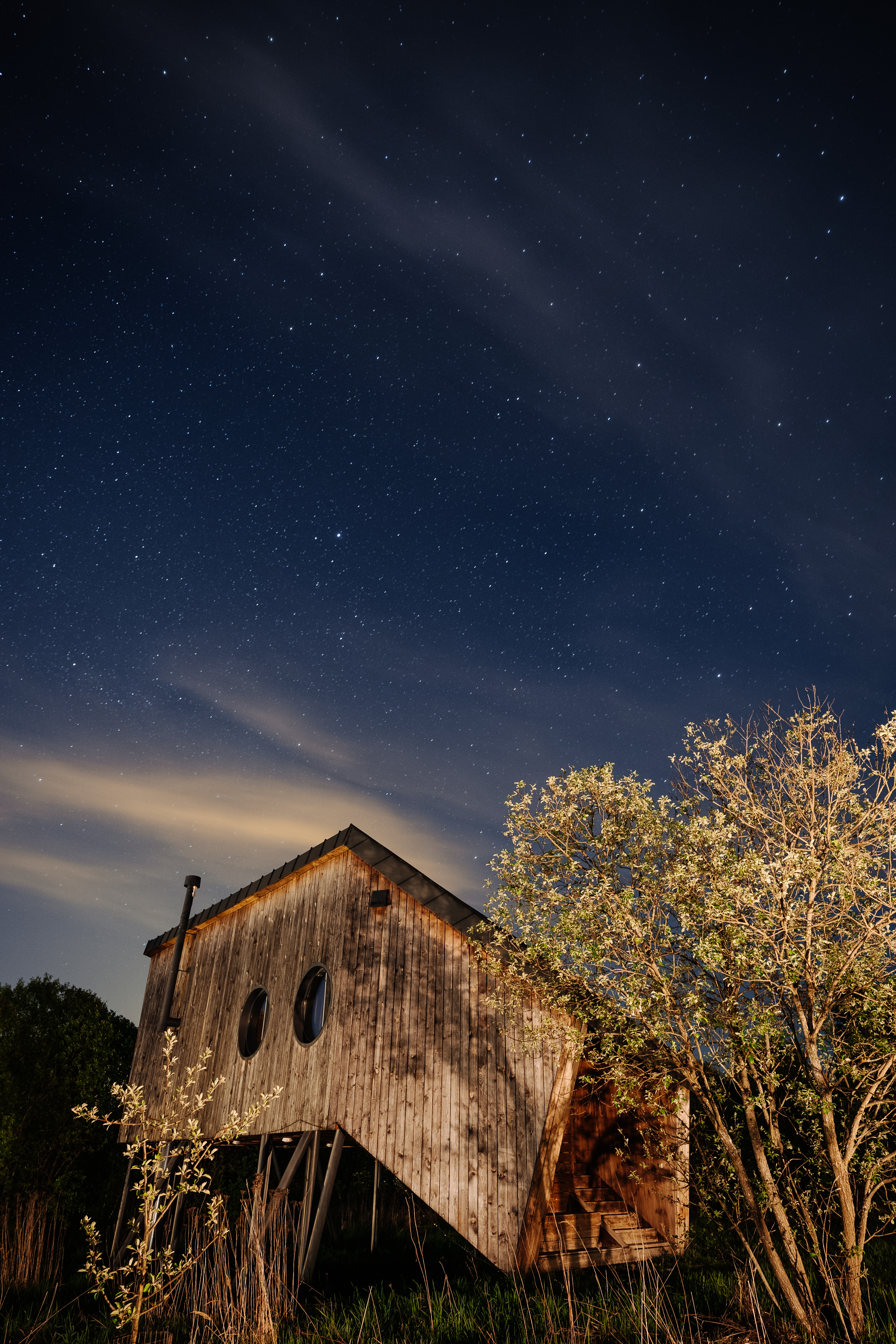 Отдельного внимания заслуживают Гостевые дома «Стадо». Жилые блоки отрываются от земли и приподнимаются так, чтобы минимизировать опирание объемов, встающих “на ногах” над травой и кустами. Объекты представляют собой деревянную конструкцию, с деревянной отделкой в интерьере и активно материальные внешне – разные, хотя и объединенные общим образом -“пасущегося стада” из двух “коров” и “быка”.