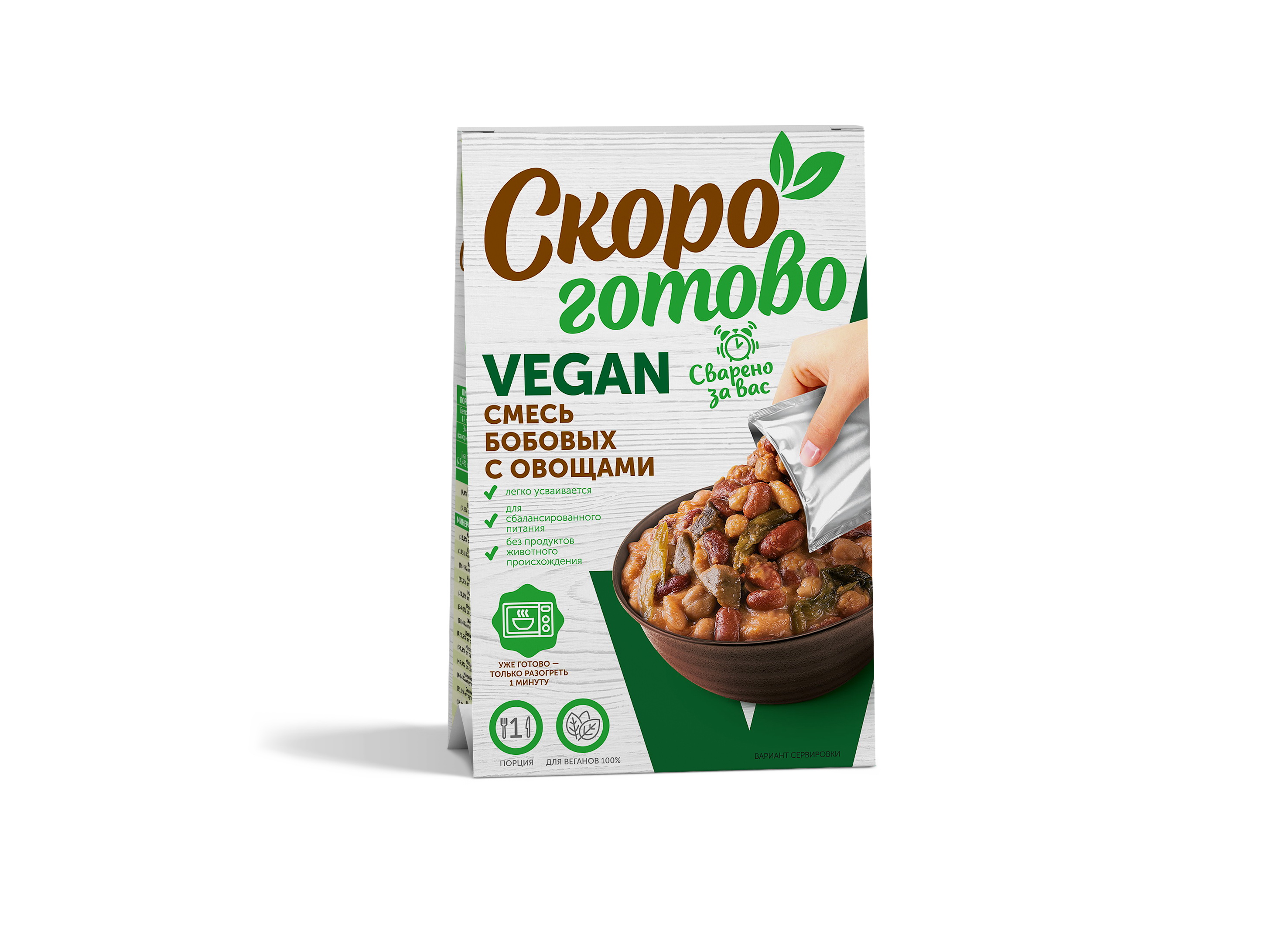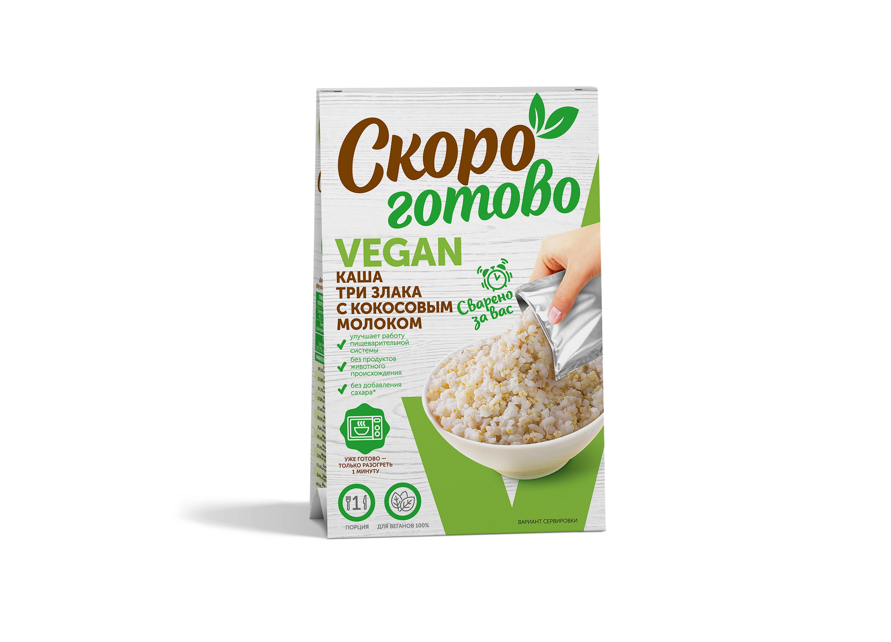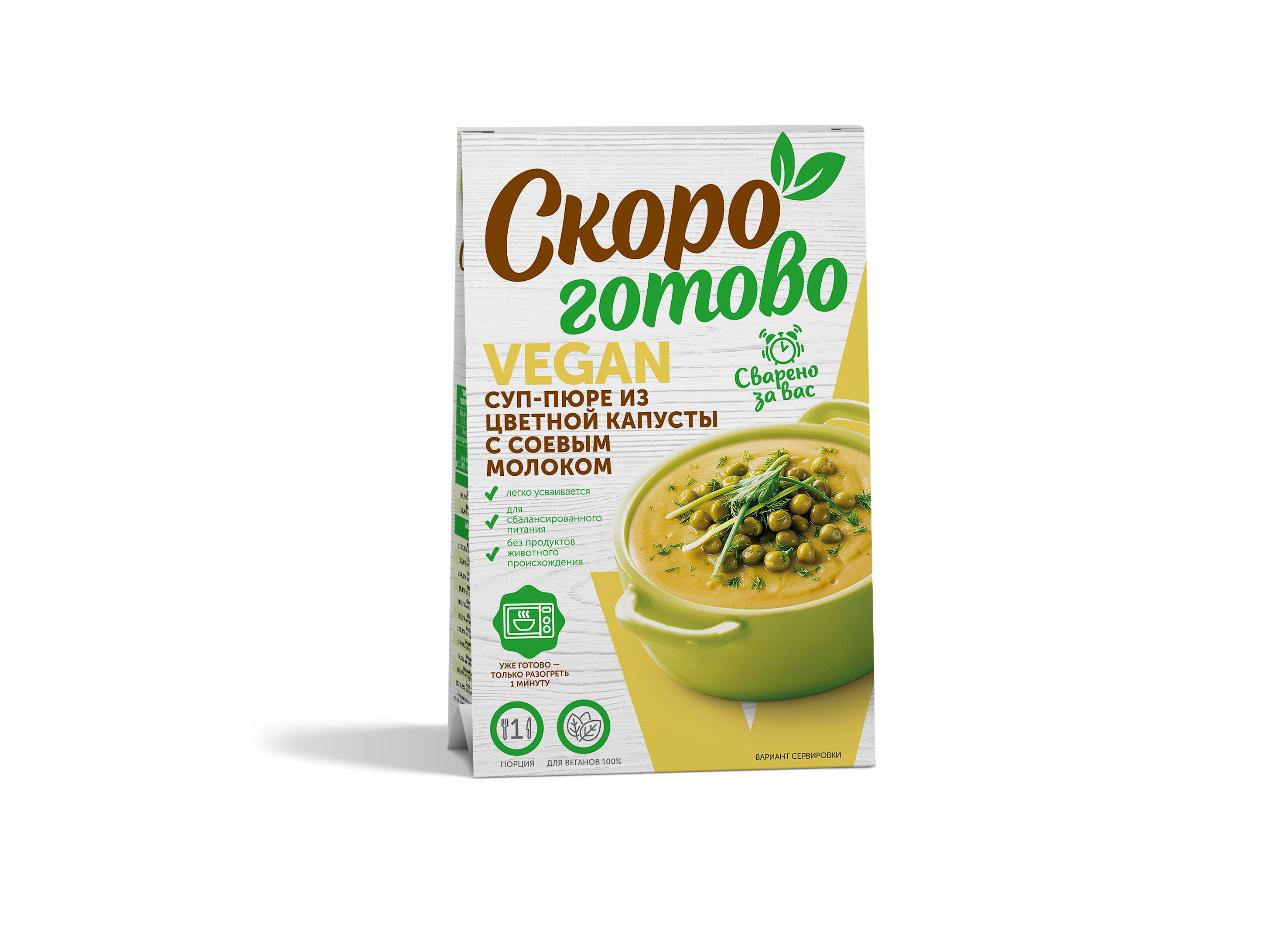 Цельнозерновые каши и супы-пюре, вторые блюда "Скоро готово" vegan - это новый формат уже готовых блюд для здорового питания в индивидуальной упаковке. Блюда, приготовленные без ингредиентов и пищевых добавок животного происхождения, без консервантов с сохранением всех полезные свойств натуральных ингредиентов, благодаря уникальной технологии бережной обработки паром.Приготовление цельнозерновых многозлаковых каш, супов-пюре, сытных вторых блюд в домашних условиях - это трудоемкий и длительный процесс и мы решили эту задачу за вас.