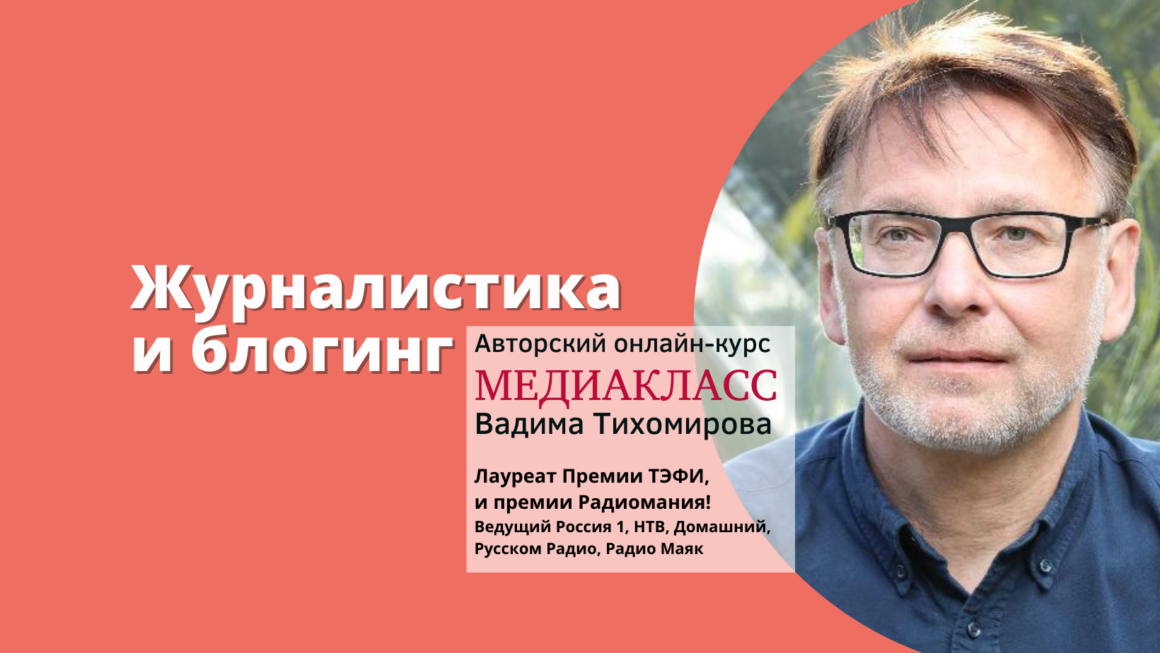 Приглашаем на авторский курс журналистики для подростков от Вадима Тихомирова (журналист, ведущий, обладатель премий Тэффи, Радиомания, голос «Радио Россия». Работал на телеканалах НТВ, «Россия-1», «Домашний». Ведущий радиостанций «Русское Радио», «Радио Маяк». Профессионал своего дела и опытный преподаватель (ВШТ «Останкино», МГУКИ, ГИТР)).