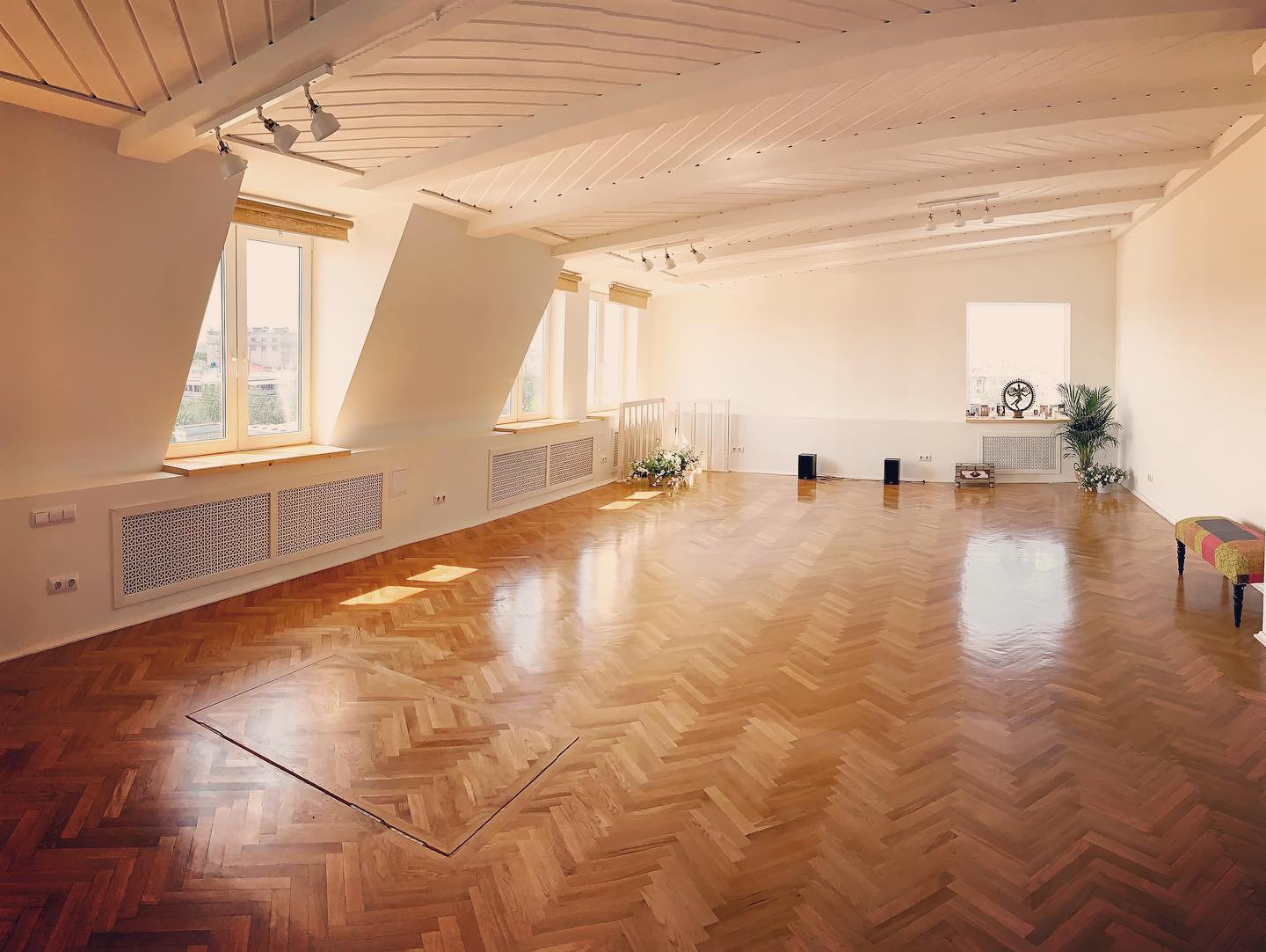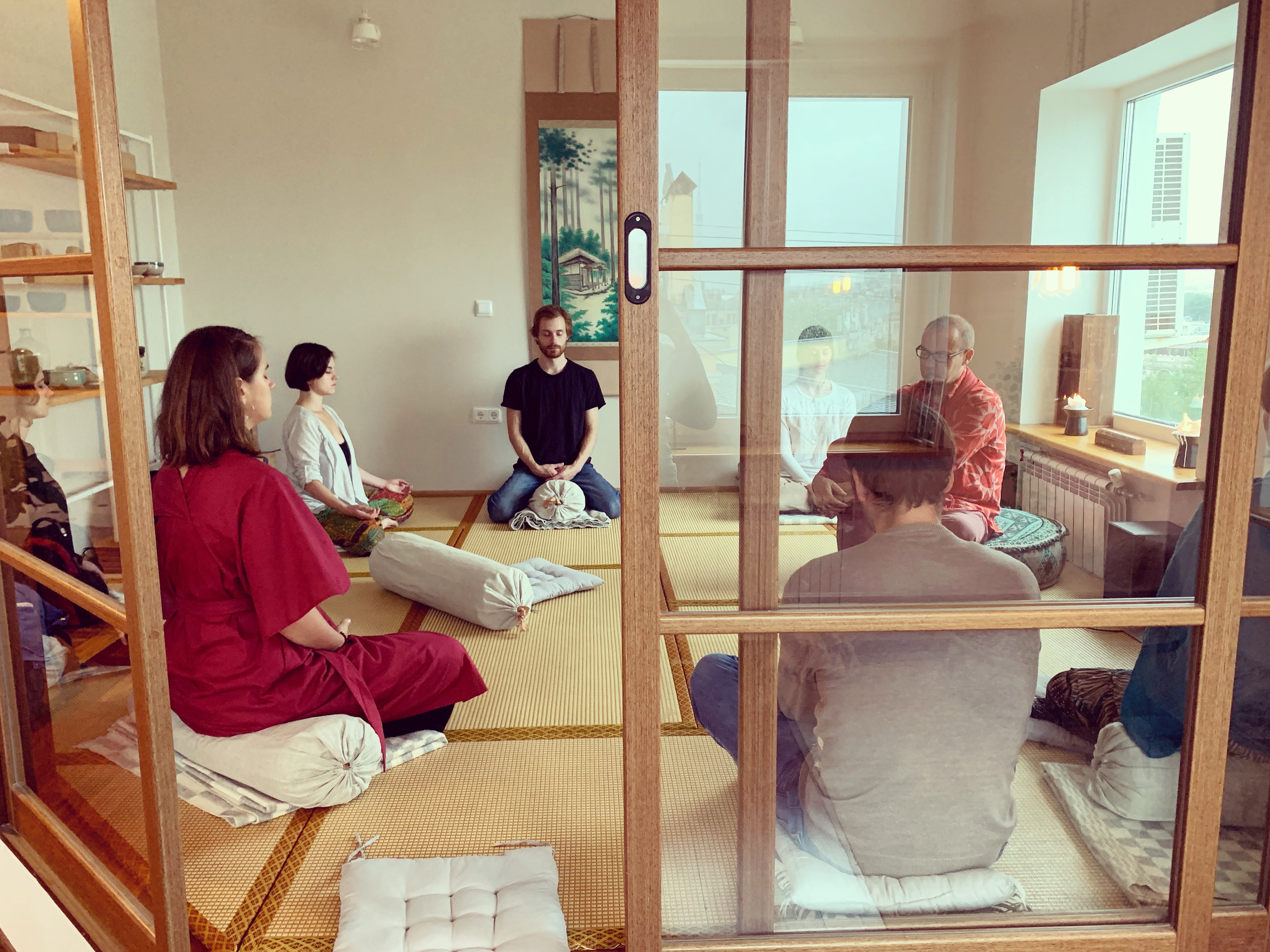 Сама атмосфера студии и вид, открывающийся из окон, уже с первых минут настраивают вас на практику и созерцание.
