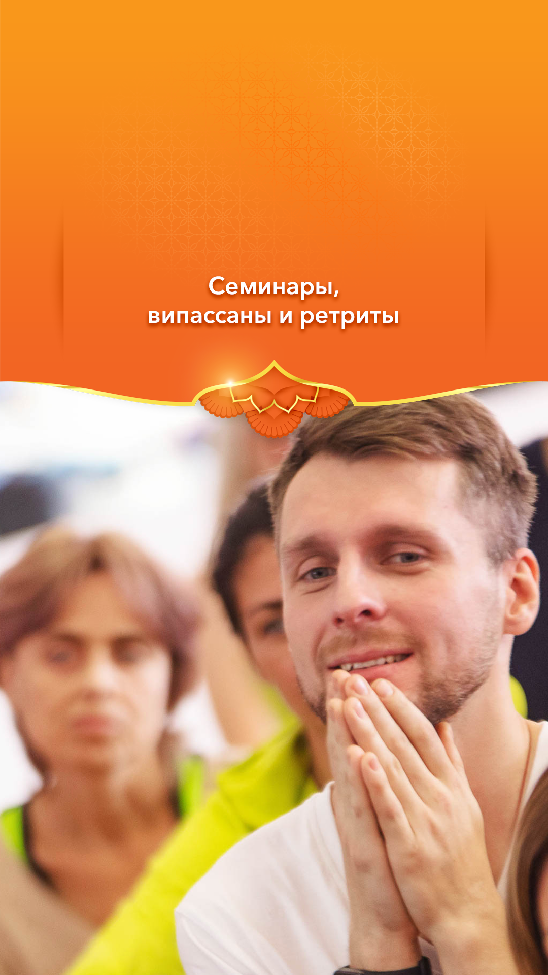 ✔ медитации, семинары, коллективная мантра «Ом», ретриты, випассаны и многое другое.